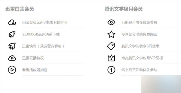 迅雷白金會(huì)員以及騰訊文學(xué)包月會(huì)員服務(wù),騰訊就拿點(diǎn)沒(méi)用的業(yè)務(wù)跟迅雷合作~