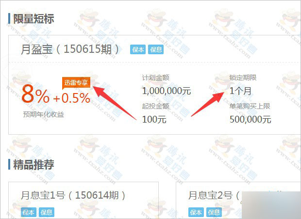 3、打開地址 http://wealth.jrq.com/ 選擇如下圖的迅雷活動,1個月的投資。