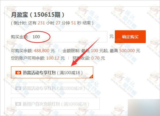 4、投資的時候可以使用迅雷紅包(18元是先返還到自己的賬戶)