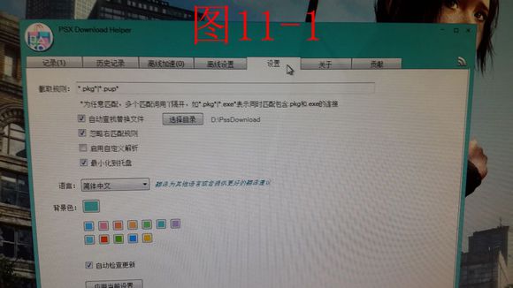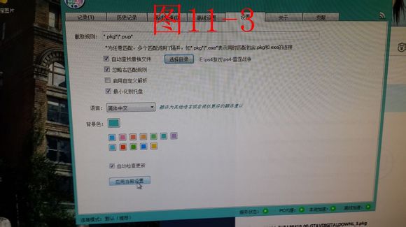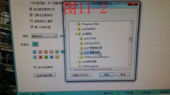 11.在PSXDownloadHelper界面上方選設置-選擇目錄(就是剛才下載完的文件目錄)-應用當前設置(詳見圖11-1至11-3)pc端的設置就全部結束了。
