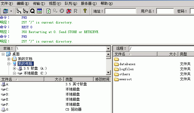 上圖中databases是數據庫備份所要的,logfiles是存放日志的,others是備用, 這三個文件夾一般都用不上的,但是不能刪掉,wwwroot是用來存放你的網站的資料的 6、雙擊wwwroot的文件夾,雙擊后便出現下圖