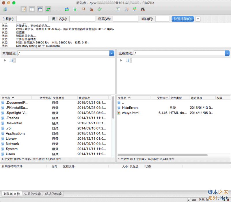 下部:傳輸隊列,從此區域可以看出隊列窗口,可以查看文件傳輸進度;