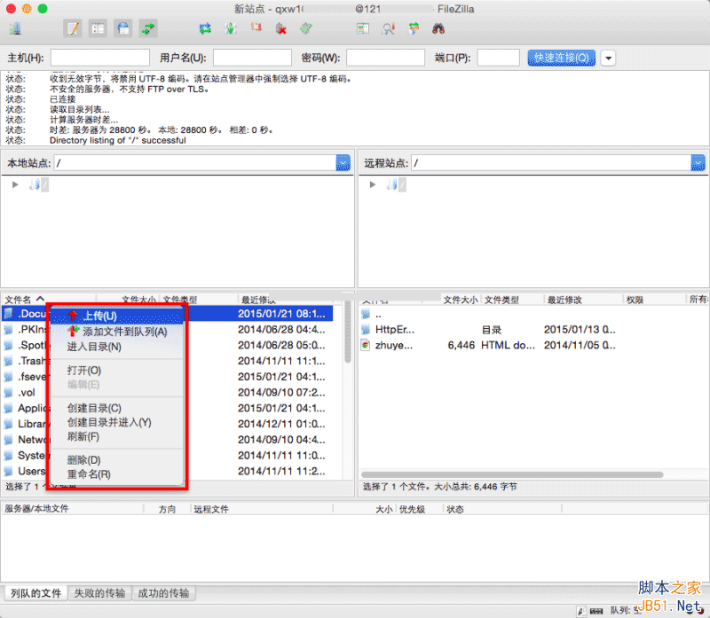 1、從本地區域選定要上傳的網頁或文件,雙擊或用鼠標拖至遠程區即可完成上傳工作;