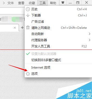 1、打開瀏覽器,點(diǎn)擊右上角【工具】選項(xiàng),然后點(diǎn)擊【選項(xiàng)】
