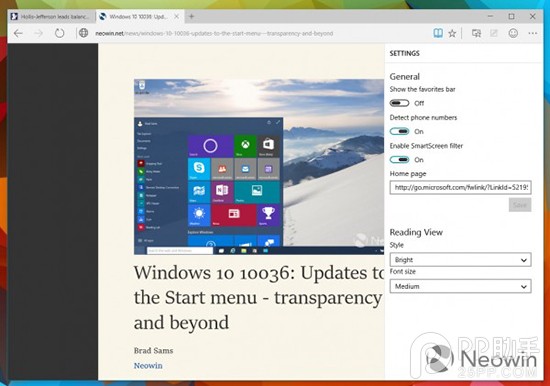 閱讀模式有幾個(gè)主題,包括,明亮,中,亮與黑暗,你可以在下面的截圖看到,每個(gè)主題都可以改變背景顏色,一些主題和文字的顏色也會(huì)發(fā)生變化。