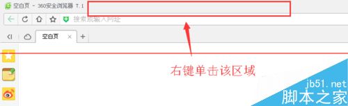 3、如果打開瀏覽器的時候,沒有找到該按鈕,需要在瀏覽器最上方的空白處點擊右鍵