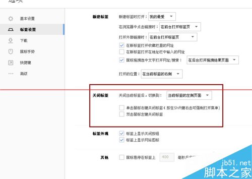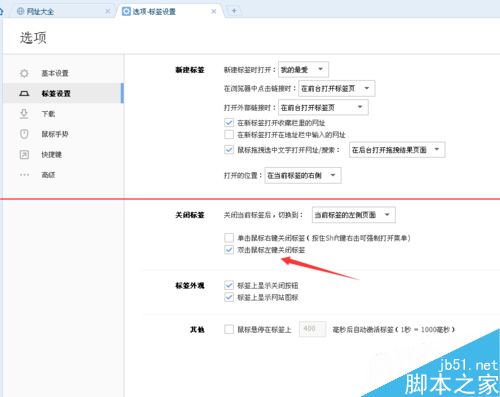 6、然后我們切換到,標簽設置了,我們在關閉標簽這里做一下設置。