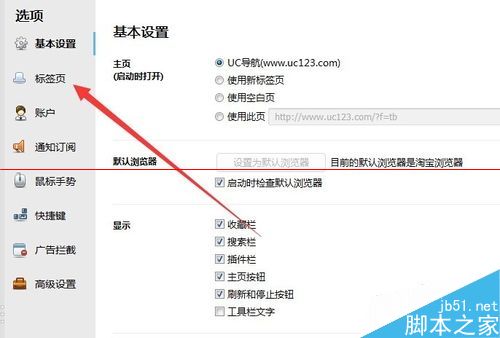 4、在打開(kāi)的選項(xiàng)窗口中,找到左側(cè)的標(biāo)簽頁(yè)菜單項(xiàng),然后點(diǎn)擊該項(xiàng)