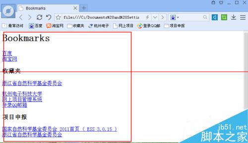 6、雙擊打開此收藏夾文件即可以看到所有收藏夾中的網址啦,點擊相應網址進入即可。