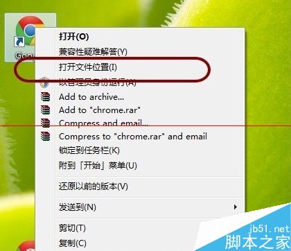 4、Chrome默認的安裝位置,可以通過右擊Chrome快捷方式圖標。點擊“打開文件位置”
