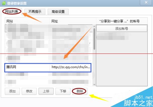 5、然后點擊該頁面右上角的設置圖標,在彈出的設置頁面,可以看到完整的網(wǎng)站名稱和網(wǎng)站地址,我們可以針對性的將一些不想保存密碼的網(wǎng)站刪除,這樣以后就不會直接登錄了