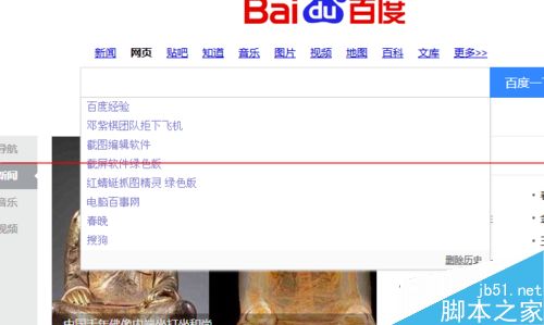 5、如果要刪除所有的關鍵字該怎么辦呢?仔細看看關鍵字的最下面,發現了“刪除歷史”這四個字了嗎?