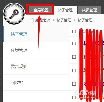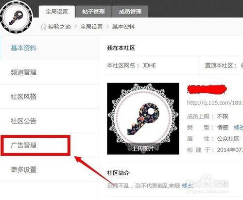 7、進入的界面中你就可以對自己圈子進行管理了,如圖箭頭所指都很清楚,可以自己進行嘗試設置