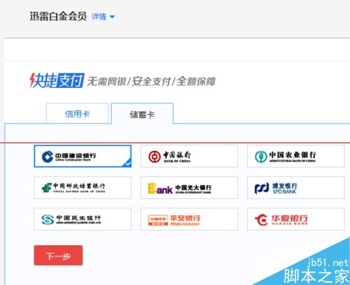 6、我們選擇快捷支付的卡,然后點擊”下一步“,如下: