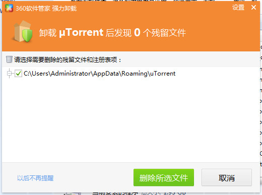 3、還是無法卸載的話,那么你肯定是下載的uTorrent綠色版,這個是不需要安裝的,所以在360軟件管家和控制面板內都找不到卸載程序!大家只需找到下載目錄,直接整個文件夾刪除即可