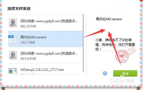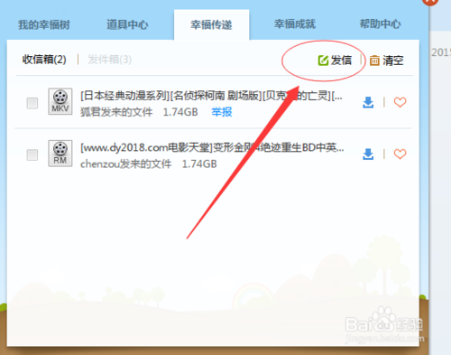 2、找到圖中的幸福傳遞選項(xiàng)選中后點(diǎn)擊發(fā)信進(jìn)入發(fā)信頁(yè)面.