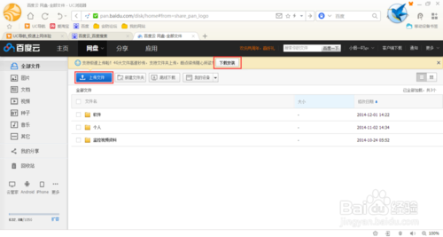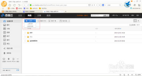 6、重啟瀏覽器,再次按照上述步驟進入百度云盤,可以點擊上傳文件,從自己電腦上找一個容量比較大的文件測試一下。