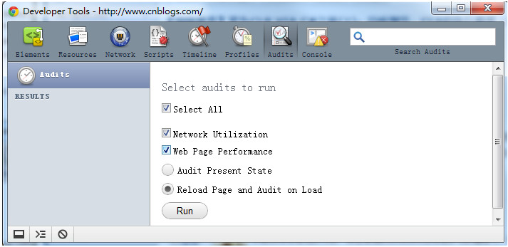 點擊run按鈕,就可以開始分析頁面,分析完了就可以看到分析結果了