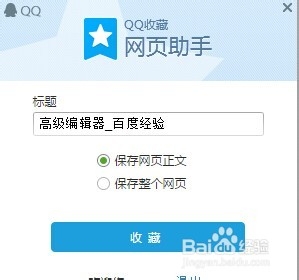4、另一種方案就是用QQ收藏了,當(dāng)然這個要在瀏覽器里裝插件,好處是存在云端,不占用本地空間,首先在百度瀏覽器中安裝該插件