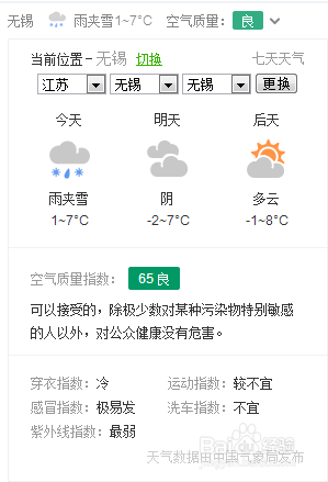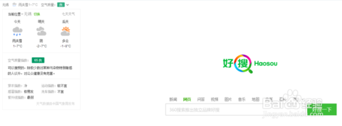 2、將鼠標移至360好搜界面左上角城市天氣區域,該區域將顯示該城市天氣的詳細情況,如圖所示: