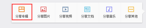 3、點擊【分享專輯】選項,頁面切換到發布專輯界面,如下圖所示。