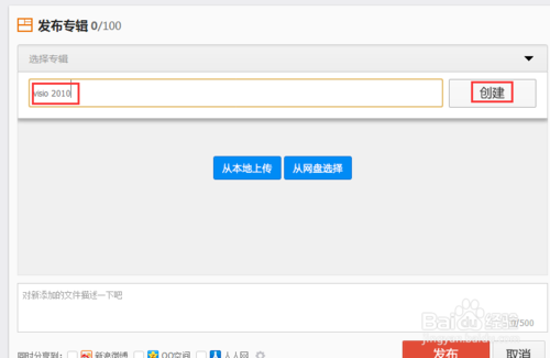 8、文件上傳完畢之后,點擊下方的【發布】按鈕,即可成功的分享自己的專輯了。如下圖所示。