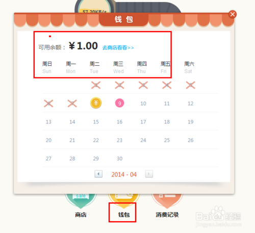 7、可以通過(guò)點(diǎn)擊“錢(qián)包”查看自己的存錢(qián)記錄和金額。