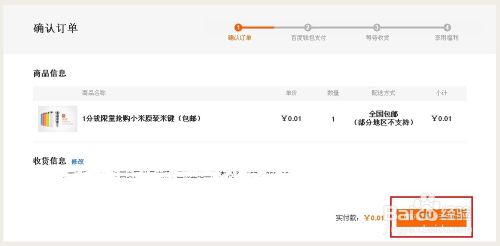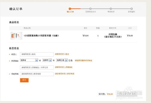 4、按照要求填寫好收貨地址點擊”保存“,緊接著點擊”確認訂單,去支付“