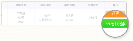 三、在12306訂單管理頁面找到想退的票 點(diǎn)擊“360省錢退票”