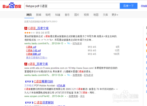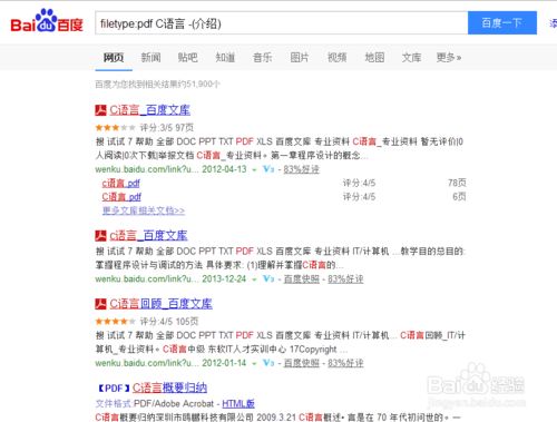 5、例如,我們要搜索”C語言“,但是不含“介紹”的pdf文件。