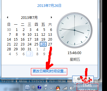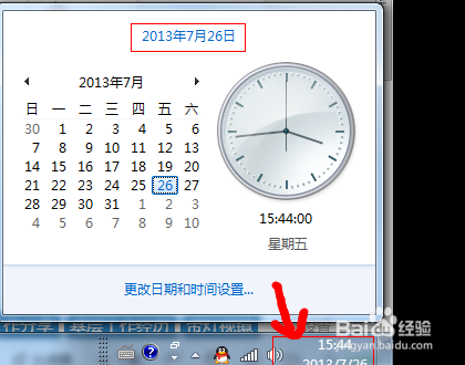 2、首先更改日期,點擊電腦右下角的日期和時間,出現如圖畫面