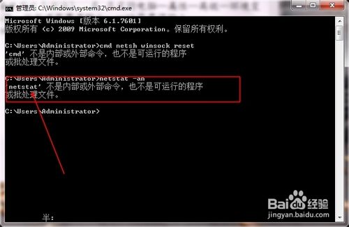 4、再輸入netstat -an進行檢測一下是否導入了路徑,出現圖片中所示字樣說明導入成功,但是這樣只能用這一次,需要永久使用的話必須到我的電腦—屬性—高級—環境變量 里面重新設置路徑,按新建變量名輸入:path變量值輸入:%SystemRoot%/system32;%SystemRoot%;%SystemRoot%/System32/Wbem