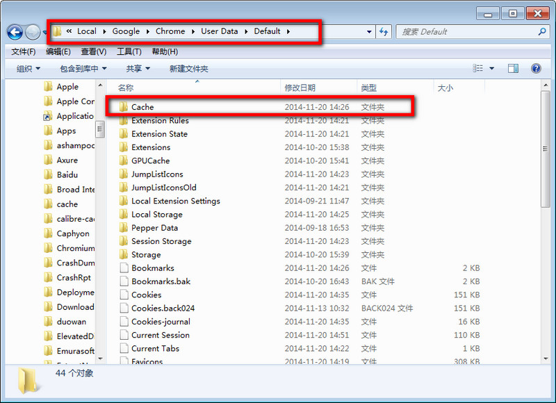 第一步:Chrome瀏覽器默認的緩存文件位于:打開 C:/Users/Administrator/AppData/Local/Google/Chrome/User Data/Default/Cache