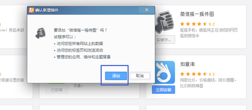 3、安裝完成后,會彈出一個添加的對話框,點擊“添加”