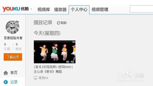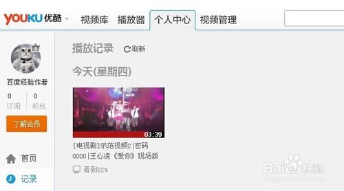 3、輸入密碼后一定要看過廣告,視頻播放幾秒鐘,才會在播放記錄中出現。只看一半廣告沒看到視頻是不算播放記錄的。把想要下載的視頻都挨著看完以后,打開優酷客戶端。在個人中心左側找到“記錄”,這是剛才觀看的視頻記錄。上面有個刷新按鈕,刷新一下能找到最后看過的視頻。點擊視頻繼續看。