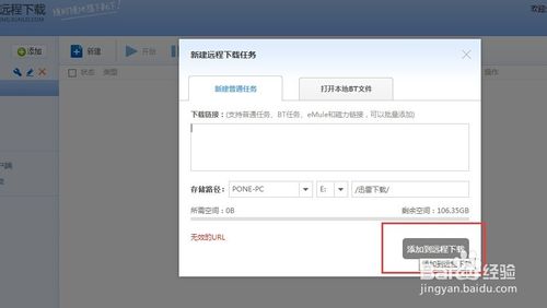 5、然后點(diǎn)擊“新建”下載任務(wù),然后輸入下載URL鏈接,點(diǎn)擊選擇下載設(shè)備為我們剛才綁定的電腦就行啦,但是切記:電腦必須處于開(kāi)機(jī),且迅雷軟件處于開(kāi)啟狀態(tài),并且登陸了迅雷賬號(hào)才可以。