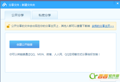 可以創(chuàng)建公開或者私密的鏈接,私密鏈接在查看文件的時候需要輸入密碼(創(chuàng)建公開鏈接,有人共享了你的文件會成為你的粉絲的哦~);