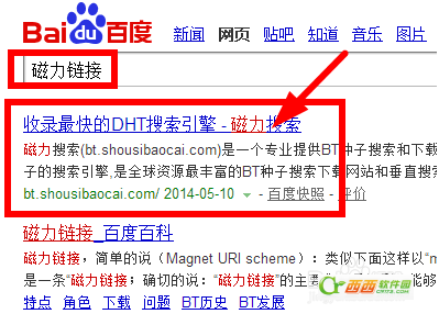 演示之前我們需要獲取磁力鏈接,所以我們先在百度獲取一個磁鏈鏈接,具體操作如下: