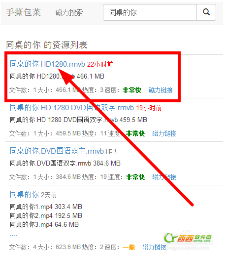 打開上圖返回結果的第一個,然后隨便輸入你想獲取磁鏈鏈接的關鍵詞,我選的是“同桌的你”,當然大家可以隨意選擇自己想要的關鍵詞,如下圖所示:
