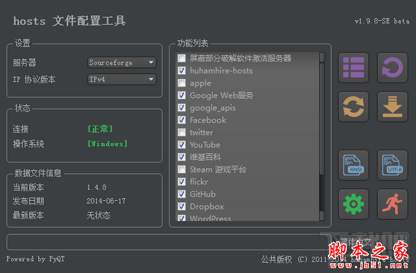 huhamhire-hosts是一款可以同步從服務(wù)器更新最新Google Hosts 文件的軟件,有了它你再也不用一個(gè)個(gè)測(cè)試可用的谷歌Hosts IP地址或者Hosts文件,它會(huì)幫你全搞定。有了它,谷歌搜索、Gmail、Google Drive統(tǒng)統(tǒng)都能用了。