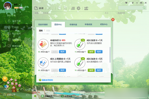 三、我們也可以點擊“幸福樹",進入道具選項購買道具讓”幸福“更快成長,更快的升級。