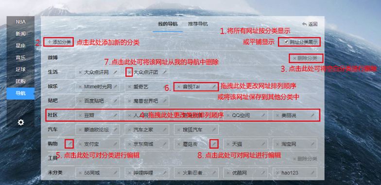 隨時拖動分類位置,也能拖動網址位置,編輯分類,刪除網址,你就是自己主頁的主宰!