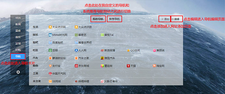 我的導航卡片支持永久收藏喜歡的網址,還能隨時編輯網址地址與名字!如果這時退出登錄,重新登錄依然回到