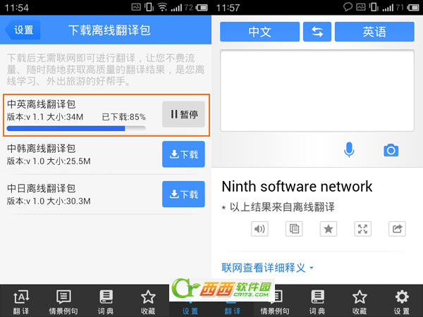 在“下載離線翻譯包”的界面中,用戶可以看到不同語言的翻譯包,有:中英翻譯包、中韓翻譯包以及中日翻譯包。用戶點擊“下載”就能把翻譯包進行下載了。下載完翻譯包之后,就可以使用翻譯包了。翻譯包的使用方法:回到翻譯界面,斷開網絡,直接輸入中文就能翻譯成英文了。
