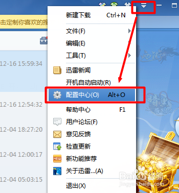 打開迅雷程序,點(diǎn)擊“菜單”->“配置中心”項(xiàng)。