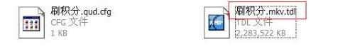 4、此時下載下來的文件有兩個,“刷積分.qud.cfg”文件和“刷積分.mkv.tdl”文件,將tdl文件的文件名復制下來,然后將這個tdl文件刪除,(注意一定要將文件類型的擴展名一并復制,如“刷積分.mkv.tdl”,可以事先設置為“顯示已知文件類型的擴展名”,具體看第7步),將事先下載好的文件(已經改為“234234”的那個文件,詳見第2步)更名為剛剛復制的文件名“刷積分.mkv.tdl”。