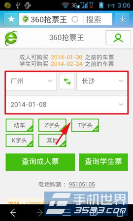 2)登錄12306后點輸入你的起始地和目的地,并輸入日期和火車類型。