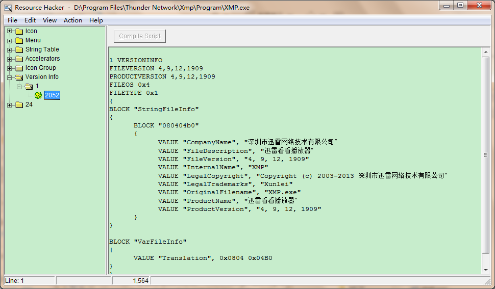 這是因為迅雷的界面都是無窗口句柄的,并且主窗口是動態(tài)創(chuàng)建的,所以看不到Dialog資源,而它的圖片文件不是放在VS的資源管理器里的,所以也看不到。其實這幾個工具就相當于VS資源管理器啦,VS里看不到的,它也看不到,因此如果用這個,咱們只能看到版權信息等等。