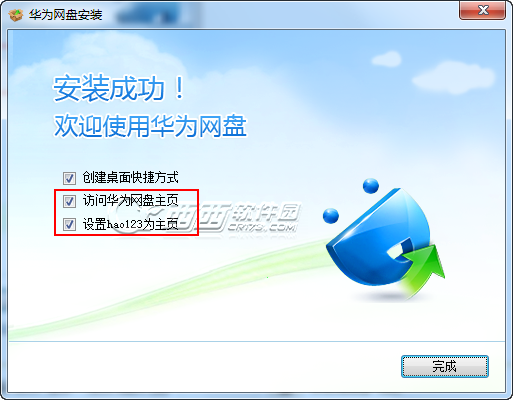 1、下載華為網盤的共享資源其實根本就沒有那么復雜,這里我們介紹使用客戶端下載。注意安裝客戶端的時候不要安裝在C盤,安裝完畢會有三個勾選,訪問華為網盤官網跟設置hao123為主頁什么的都勾掉吧。