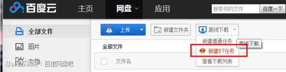 離線下載時將文件下載鏈接或BT種子提交給百度云服務器,將文件自動下載到百度云。一般大家使用BT離線下載比較頻繁,我們先介紹一下BT離線下載吧。